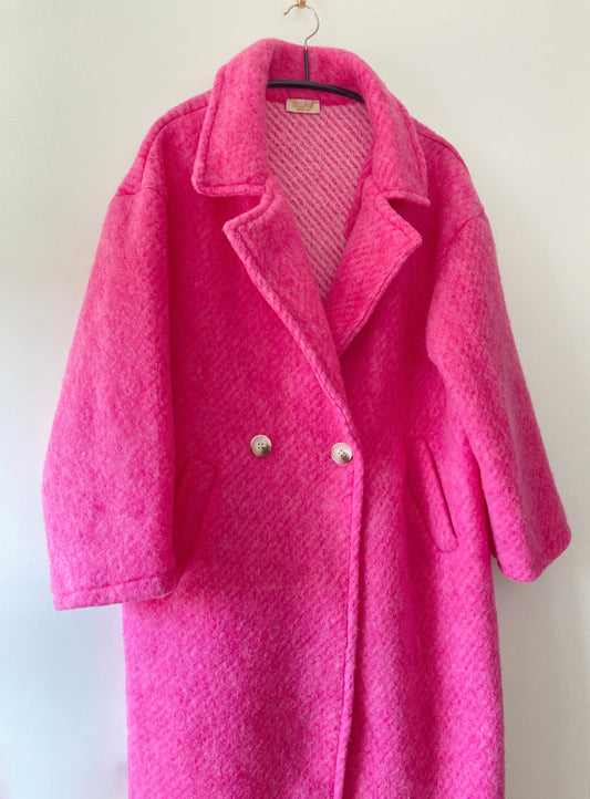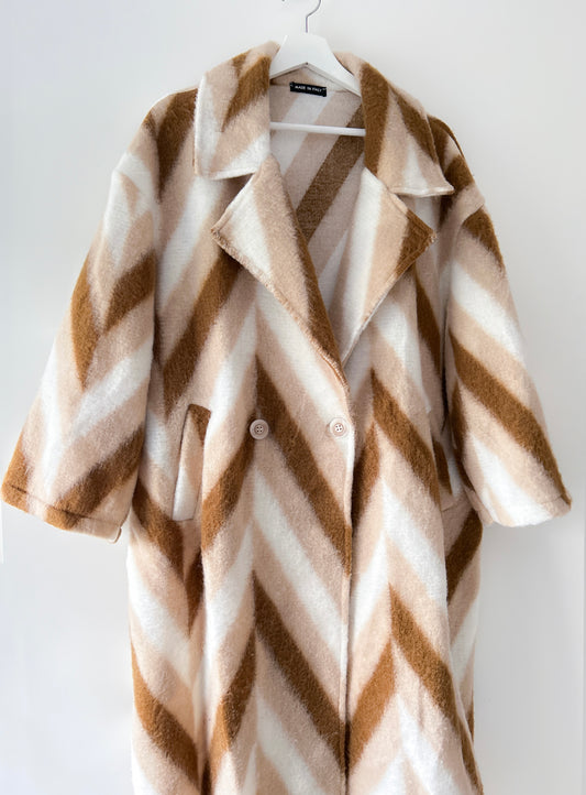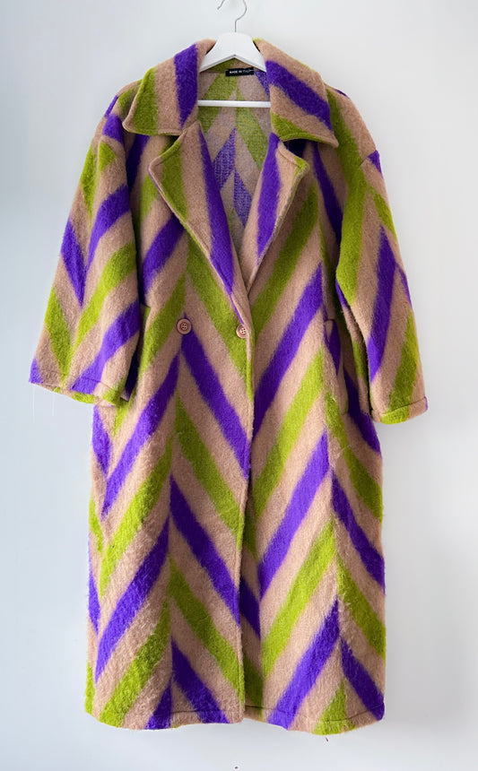 UitverkochtGestreepte Wollen Lange Overjas - Liora Roze