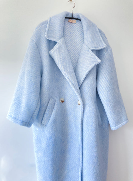 Gestreepte Wollen Lange Overjas - Liora Lichtblauw