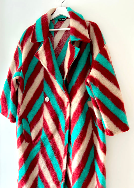 UitverkochtWollen Overjas - Noé turqoise/rood