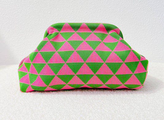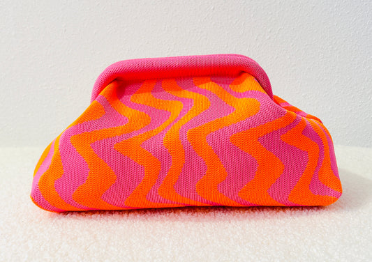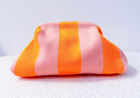 UitverkochtPastelroze/oranje gestreepte gebreide toilettas