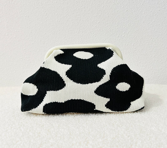 UitverkochtZwart/creme gebreide gebloemde toilettas