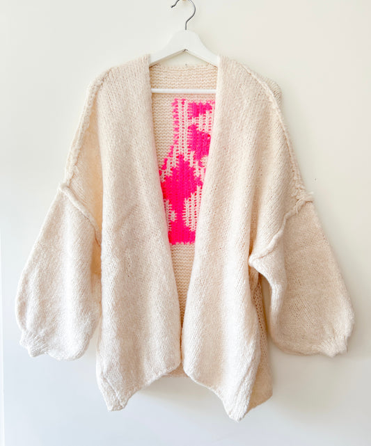 Gilet tricoté Crème - Lola cerise fuchsia/orange