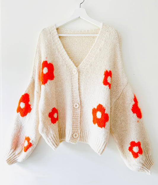 ÉpuiséGilet tricoté - Fleur orange