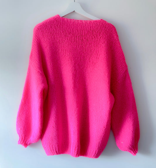 Gilet tricoté - Elsa rose fluo