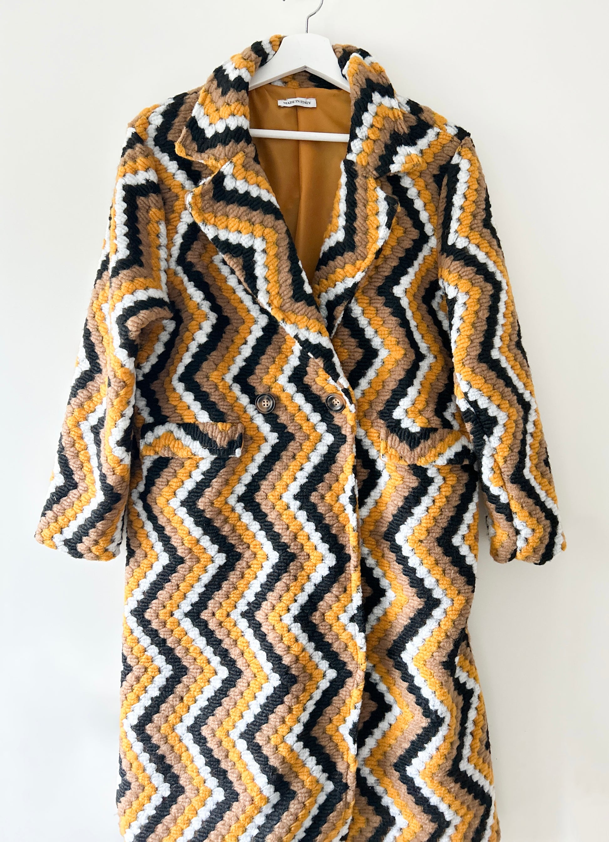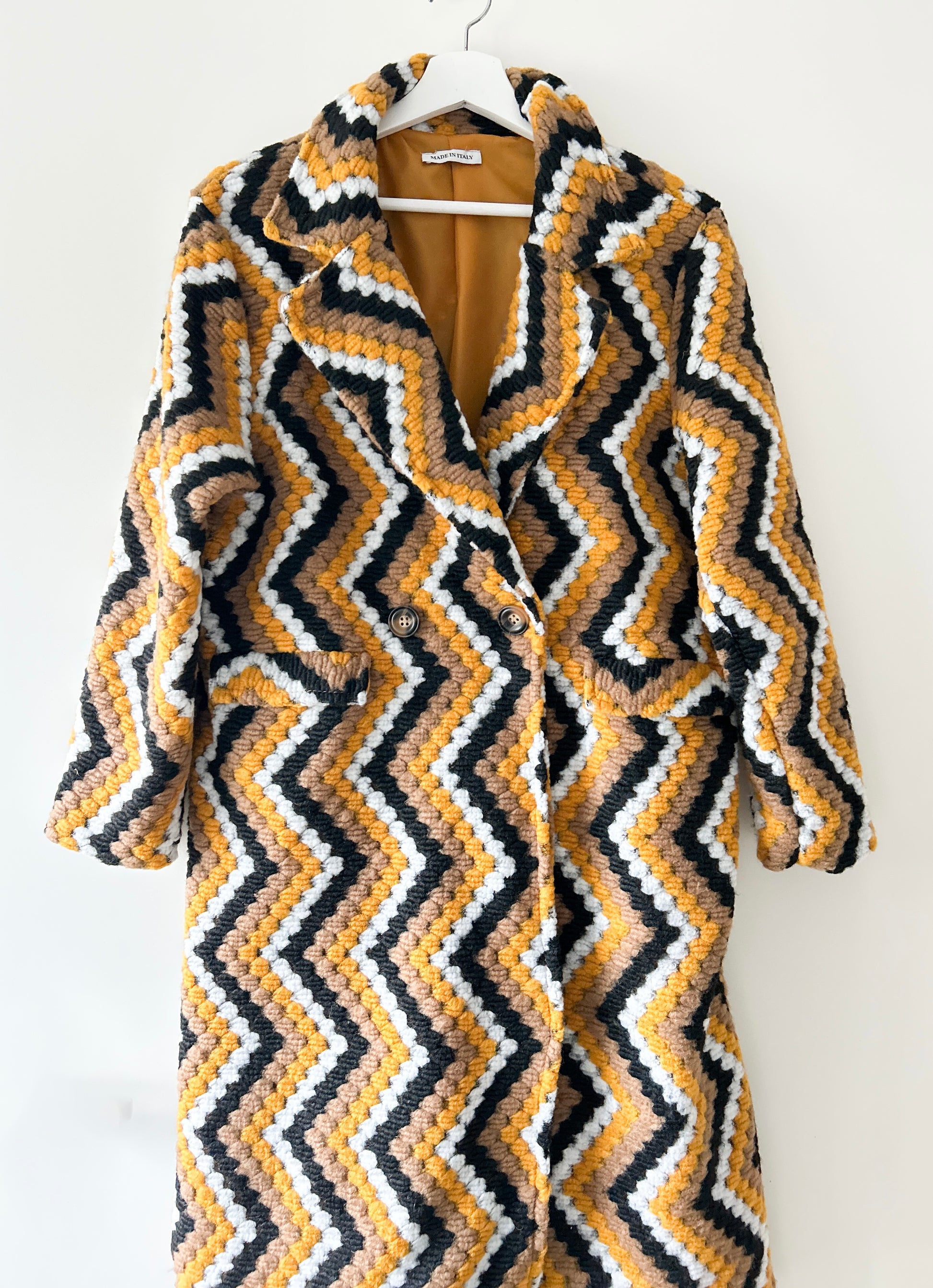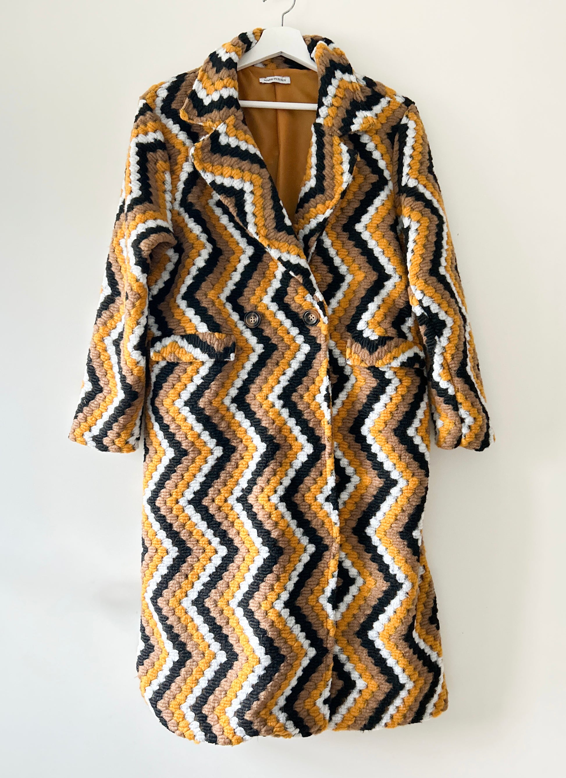 Deze prachtige gebreide wollen overjas is de perfecte mix van stijl en comfort. De luxe wol met subtiel reliëf geeft een elegante uitstraling, terwijl de voering zorgt voor extra warmte. Met zijn lange pasvorm die net boven de enkels valt, creëert hij een chique en moeiteloos trendy look.