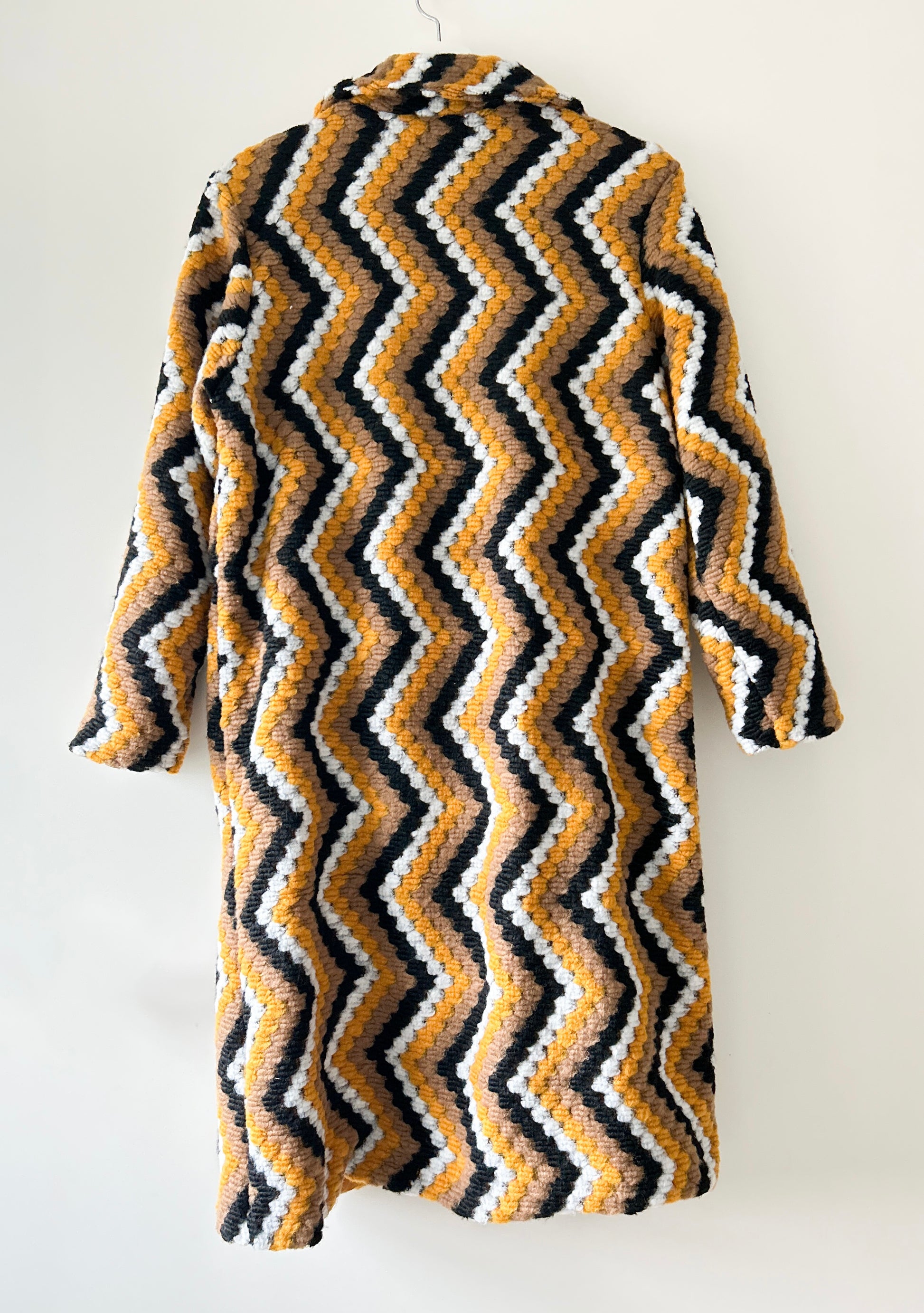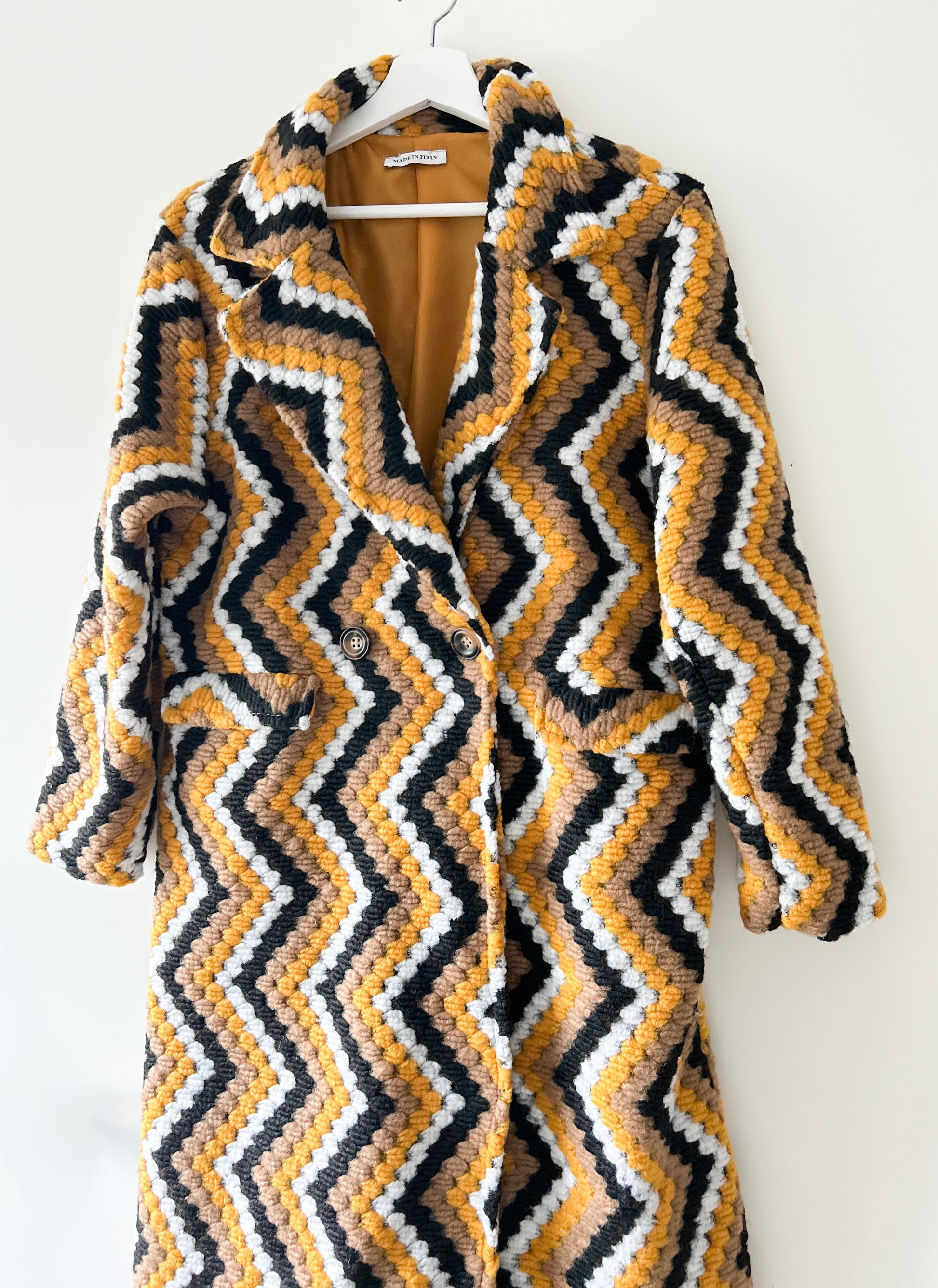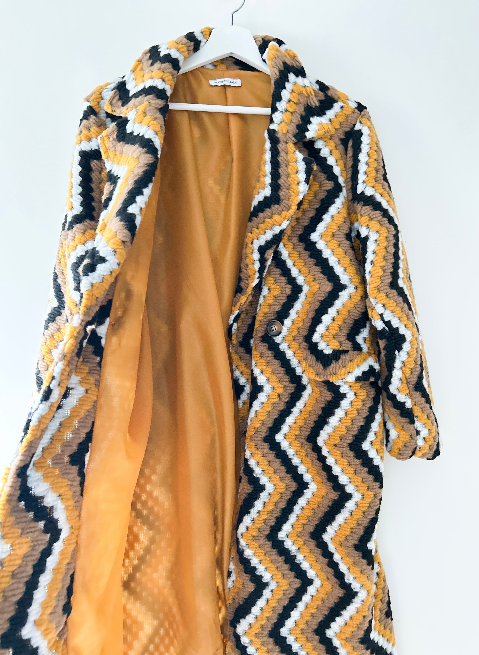 Deze prachtige gebreide wollen overjas is de perfecte mix van stijl en comfort. De luxe wol met subtiel reliëf geeft een elegante uitstraling, terwijl de voering zorgt voor extra warmte. Met zijn lange pasvorm die net boven de enkels valt, creëert hij een chique en moeiteloos trendy look.