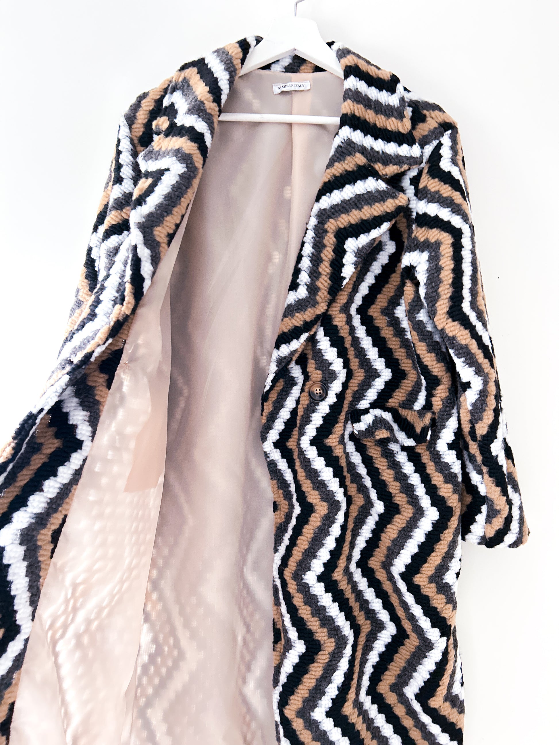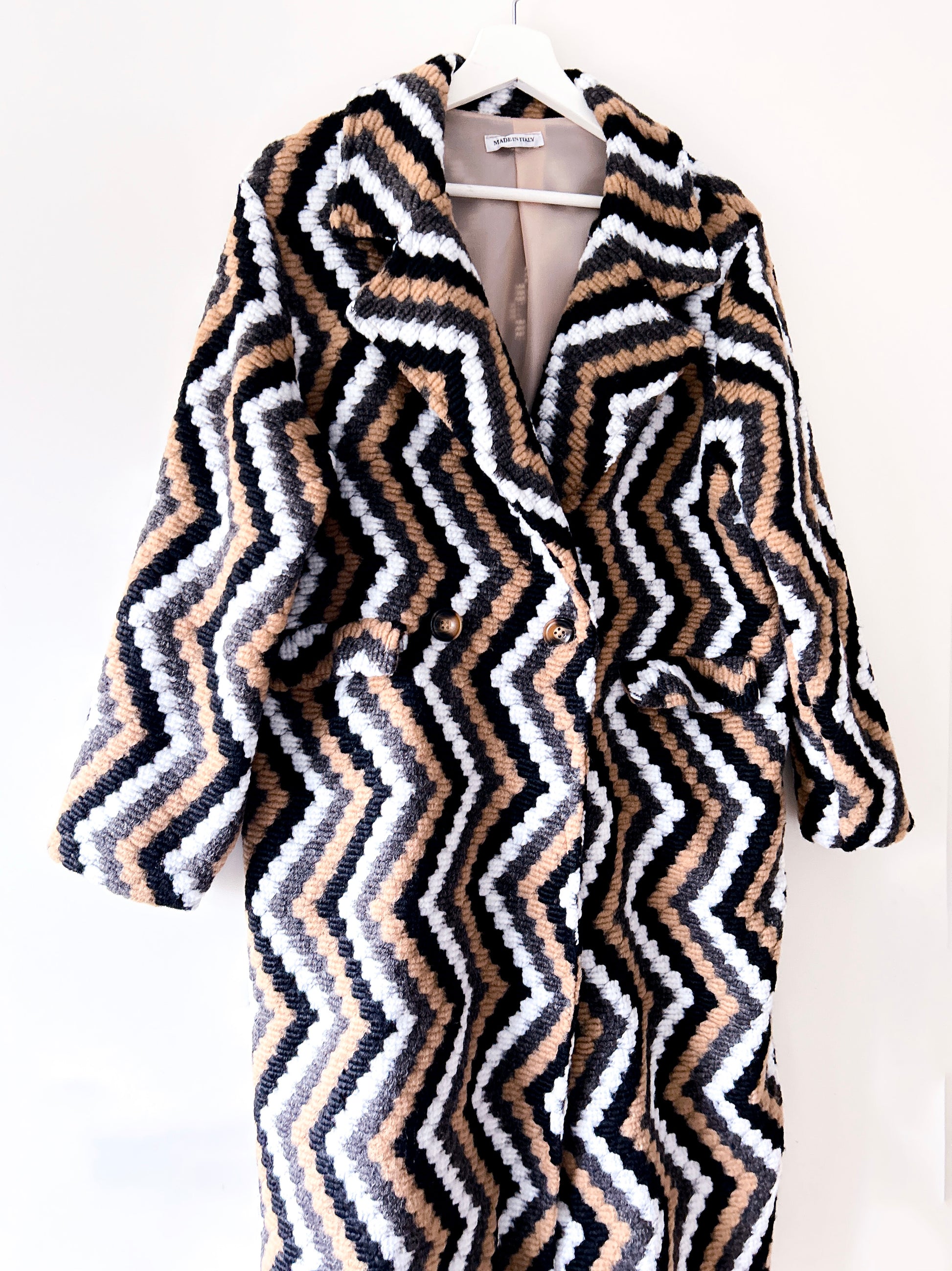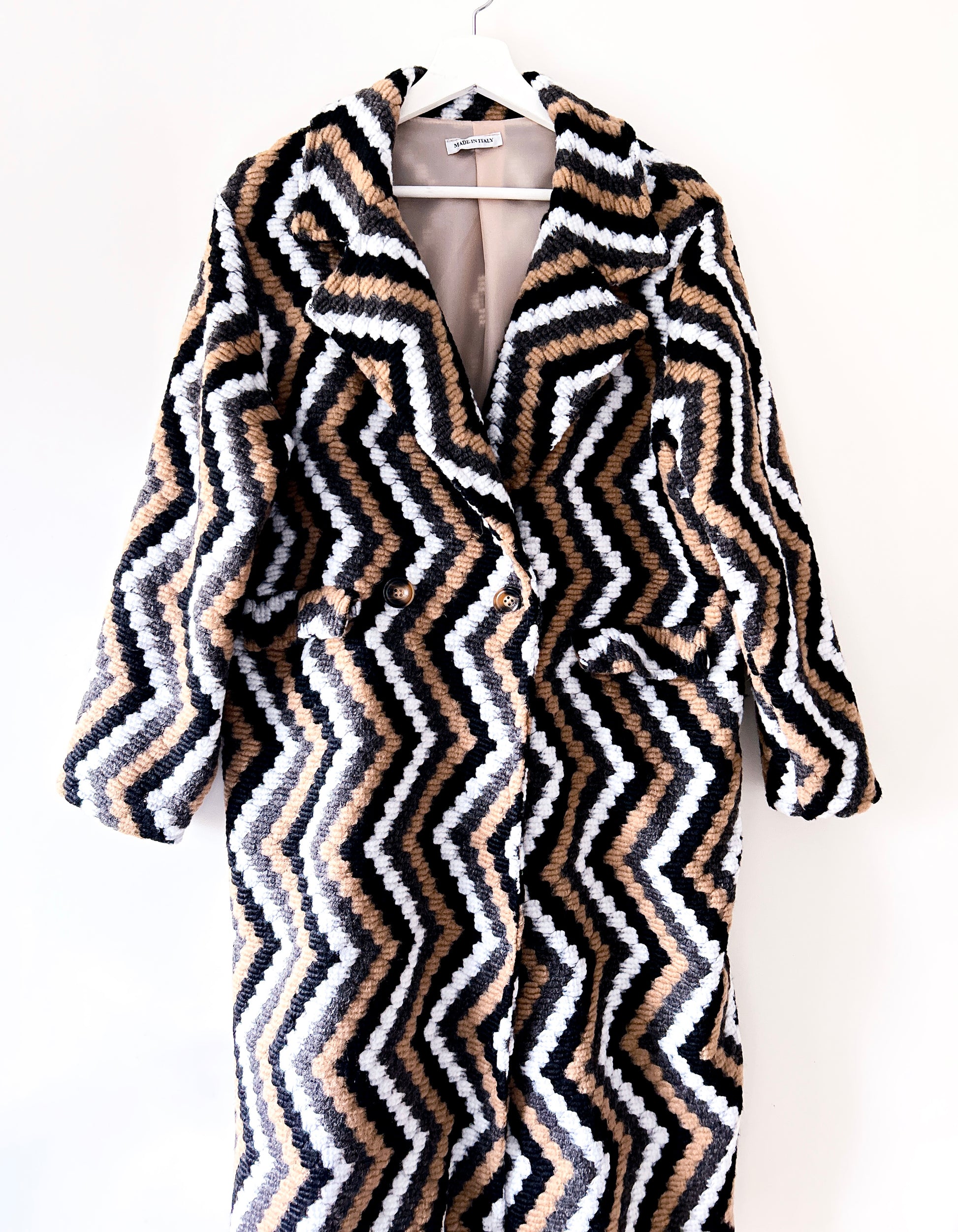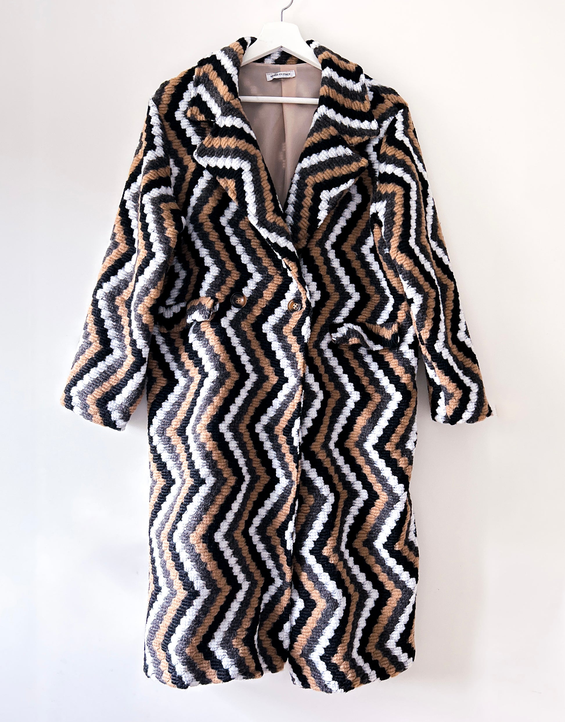 Deze prachtige gebreide wollen overjas is de perfecte mix van stijl en comfort. De luxe wol met subtiel reliëf geeft een elegante uitstraling, terwijl de voering zorgt voor extra warmte. Met zijn lange pasvorm die net boven de enkels valt, creëert hij een chique en moeiteloos trendy look.